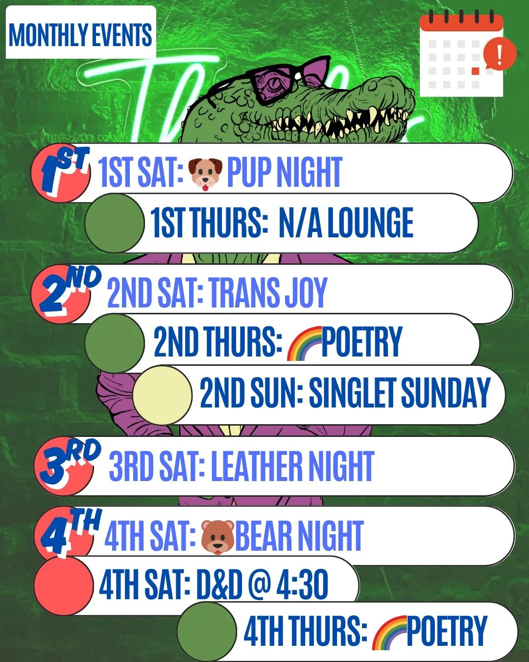 Thirsty's RVA — Events Calendar Thirsty's RVA 3516 Forest Hill Ave, Richmond VA · Queer Bar ← → Sun Mon Tue Wed Thu Fri Sat ✕