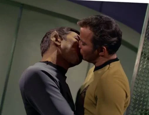 A century later, in 1974—during the rise of the first modern fandom around the newly canceled Star Trek—a short story titled “A Fragment Out of Time” appeared in fanzines at conventions. It depicted Kirk and Spock in an explicitly romantic couple. To distinguish these tales from platonic ones, fans started using a slash mark in Kirk/Spock. “Slash” fiction was born.
